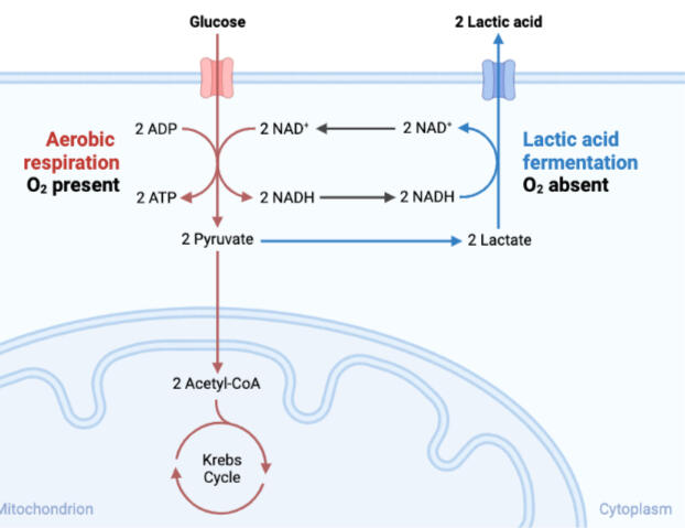 Tastbaar (en smaakvol) voorbeeld van anaerobe dissimilatie: glucose → 2 melkzuur + CO₂