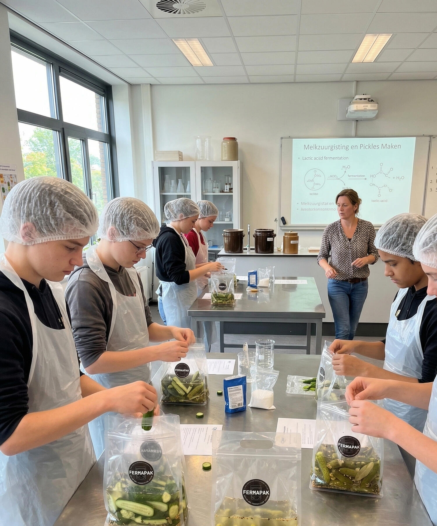 Binnen 1 les opgezet. Minimale voorbereiding. Gecontroleerd resultaat.Leerlingen zetten hun eigen fermentatie-experiment op en volgen dit gedurende een week.
